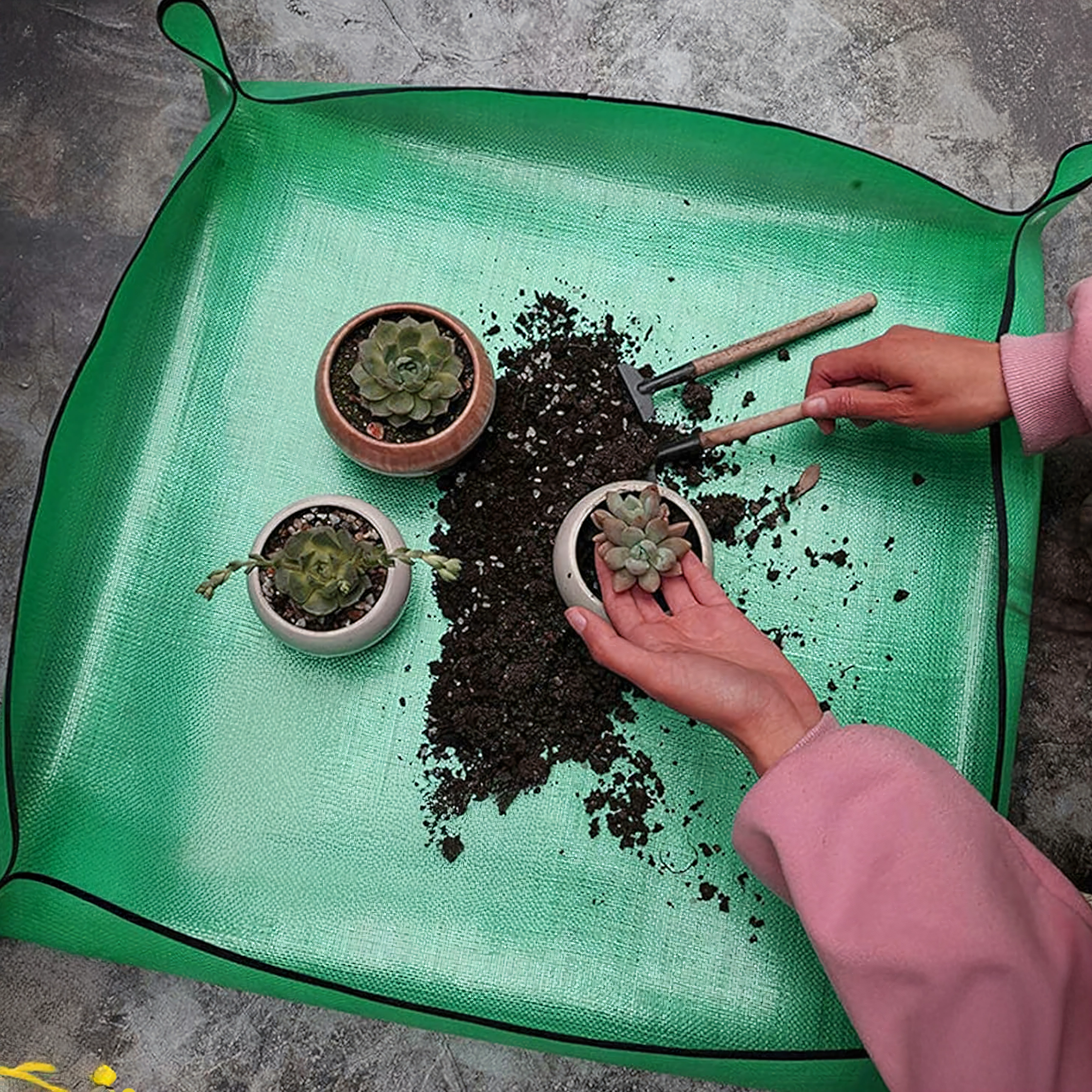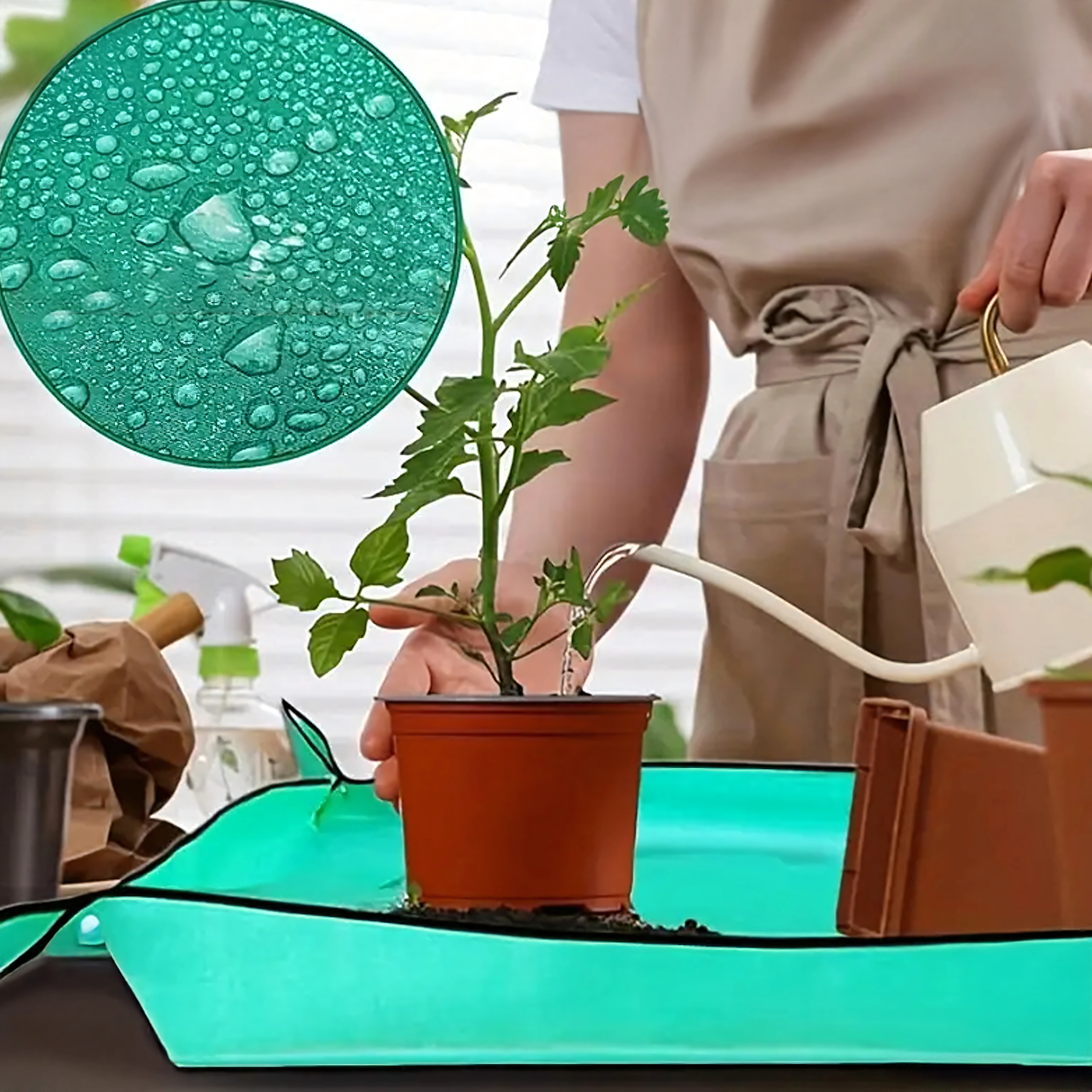 Perfekt til ompotning af stueplanter, pleje af sukkulenter, blanding af substrat og arbejde med småt værktøj. Måtten giver en stabil, uigennemtrængelig arbejdsflade, beskytter bordplader og gulve og holder alt det nødvendige inden for rækkevidde.