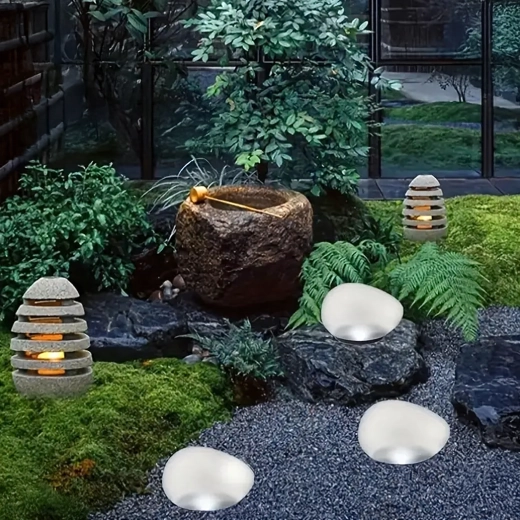 - Diskret design – småstensformen matcher naturligt pyntesten og bede.