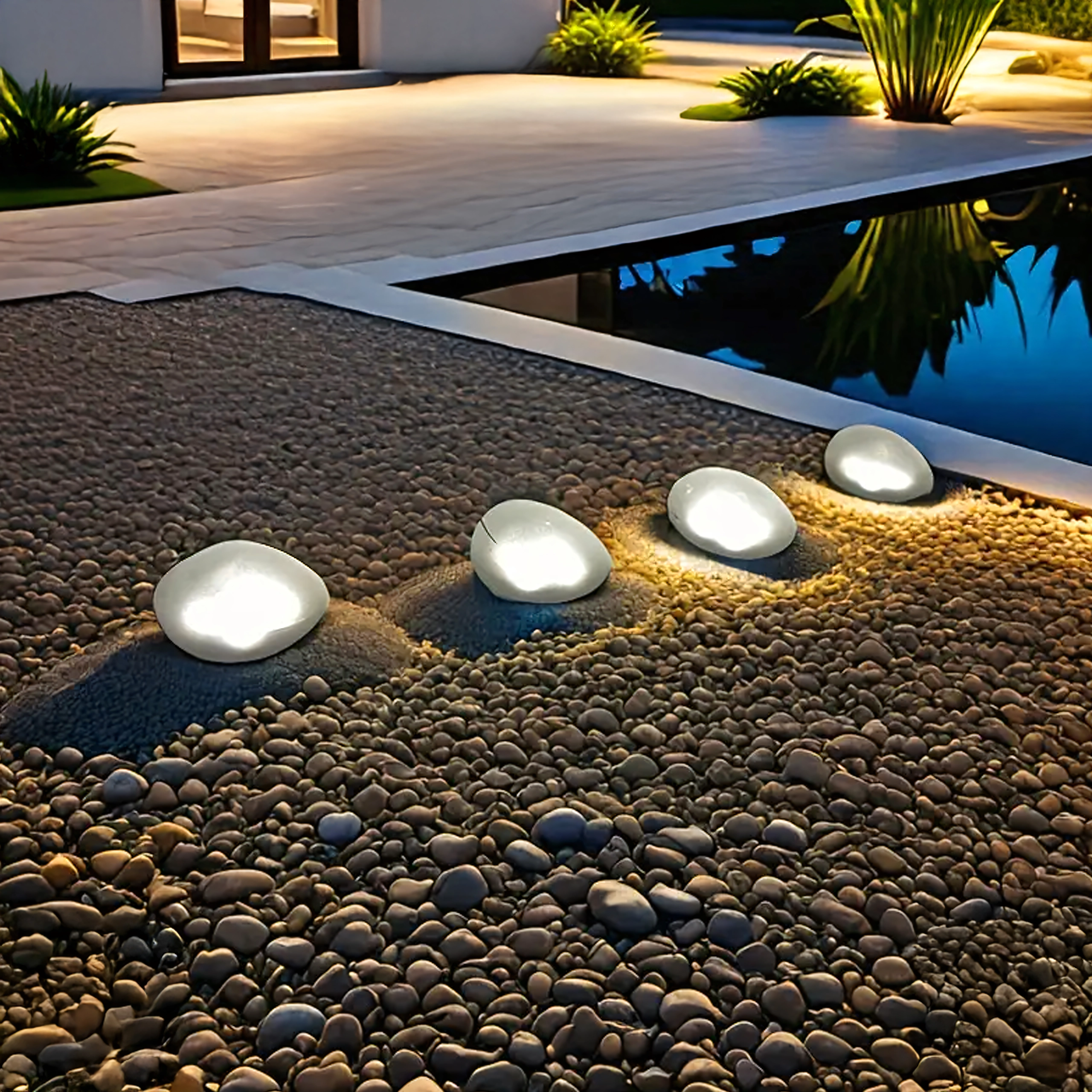 Skab en magisk atmosfære i haven, på terrassen eller ved indkørslen. Den solcelledrevne LED “sten” oplades af solen om dagen og tænder automatisk ved skumring. Den minimalistiske, afrundede form og den matte diffuser sikrer jævn, blændfri belysning, som naturligt går i ét med de omgivende sten og grønne områder.