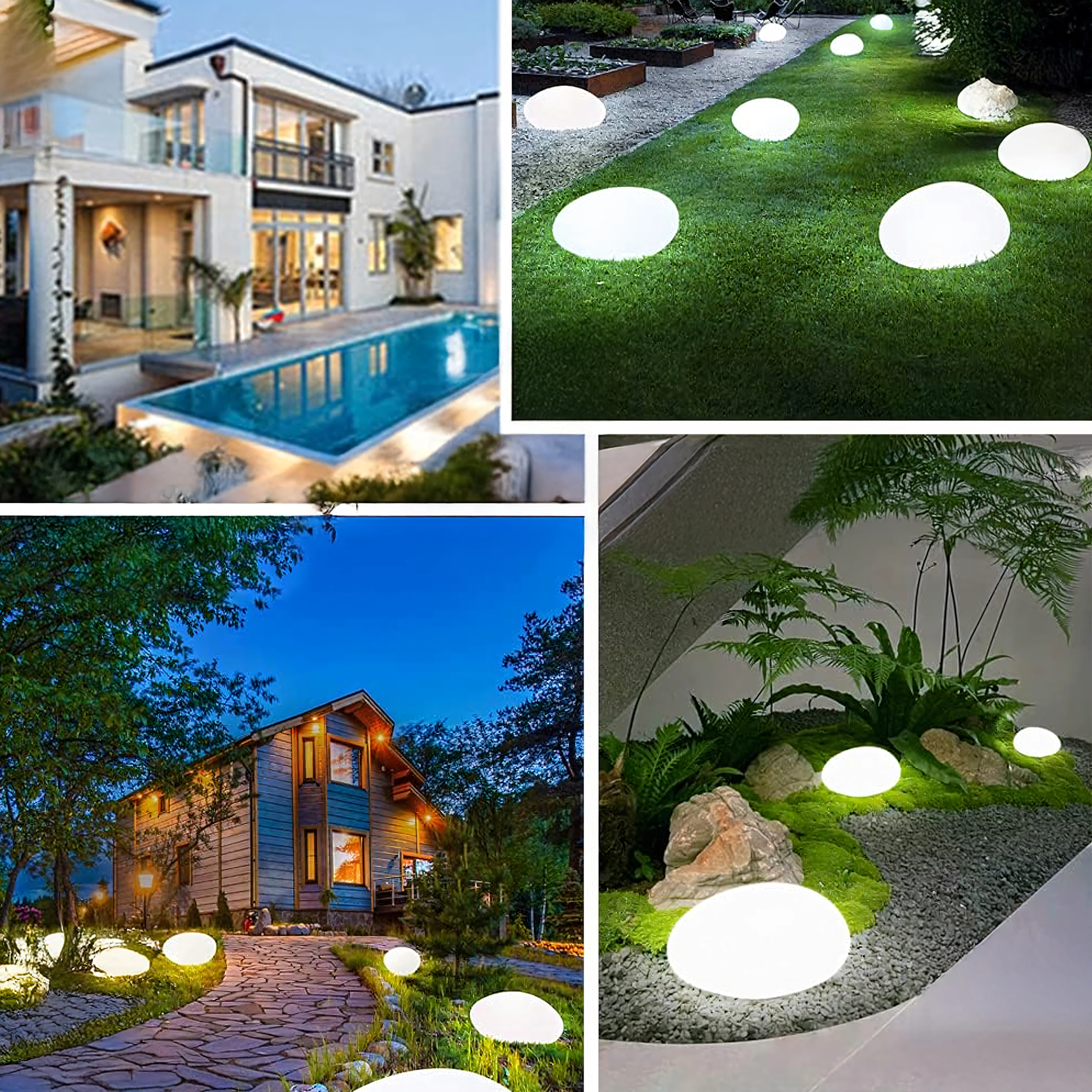 Stilfuld solcelledrevet LED-lampe formet som en sten med en diameter på 16 cm, der giver din have, terrasse og stier behagelig belysning og et moderne udtryk. Takket være det integrerede solpanel fungerer den helt uden kabler og tilbyder energibesparende drift, blødt ambient lys og vejrbestandighed.