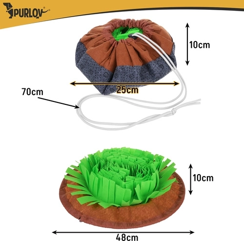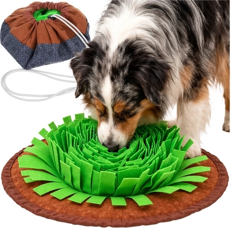 Forkæl din hund med rolig fodring og leg i ét. PURLOV snusemåtte med tætte tekstil“blade” gemmer foder og godbidder, så hunden bruger næsen i stedet for at sluge. Med snoretræk er den justerbar efter sværhedsgrad, har en skridsikker bund for stabilitet og kan nemt vaskes for daglig hygiejne.