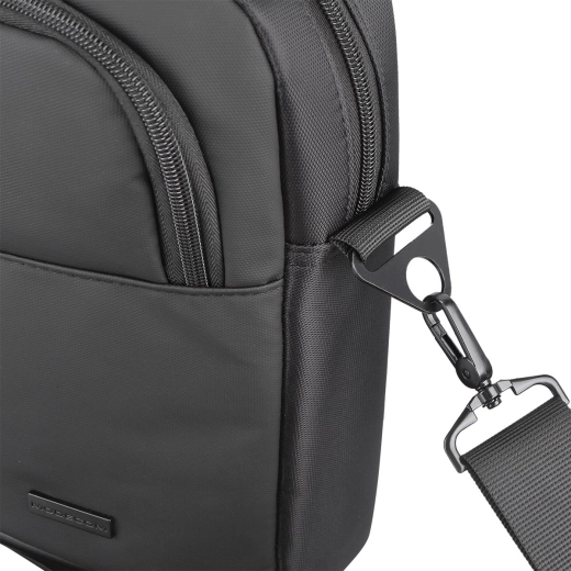 Takket være den eksterne USB-port kan du have powerbanken sikkert indeni og oplade telefonen bekvemt udefra – ideelt til lange dage på farten. Polstrede håndtag med velcrolukning fordeler vægten jævnt, mens den aftagelige justerbare rem og strop til kuffertens håndtag giver maksimal komfort under transport. Det robuste, vandafvisende polyester beskytter indholdet i let regn.