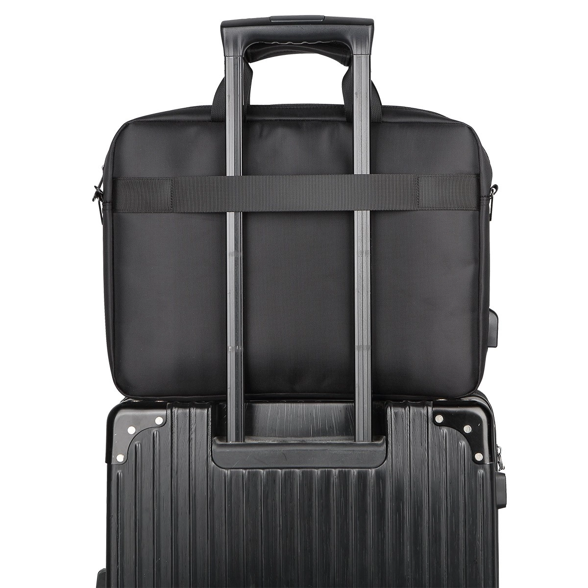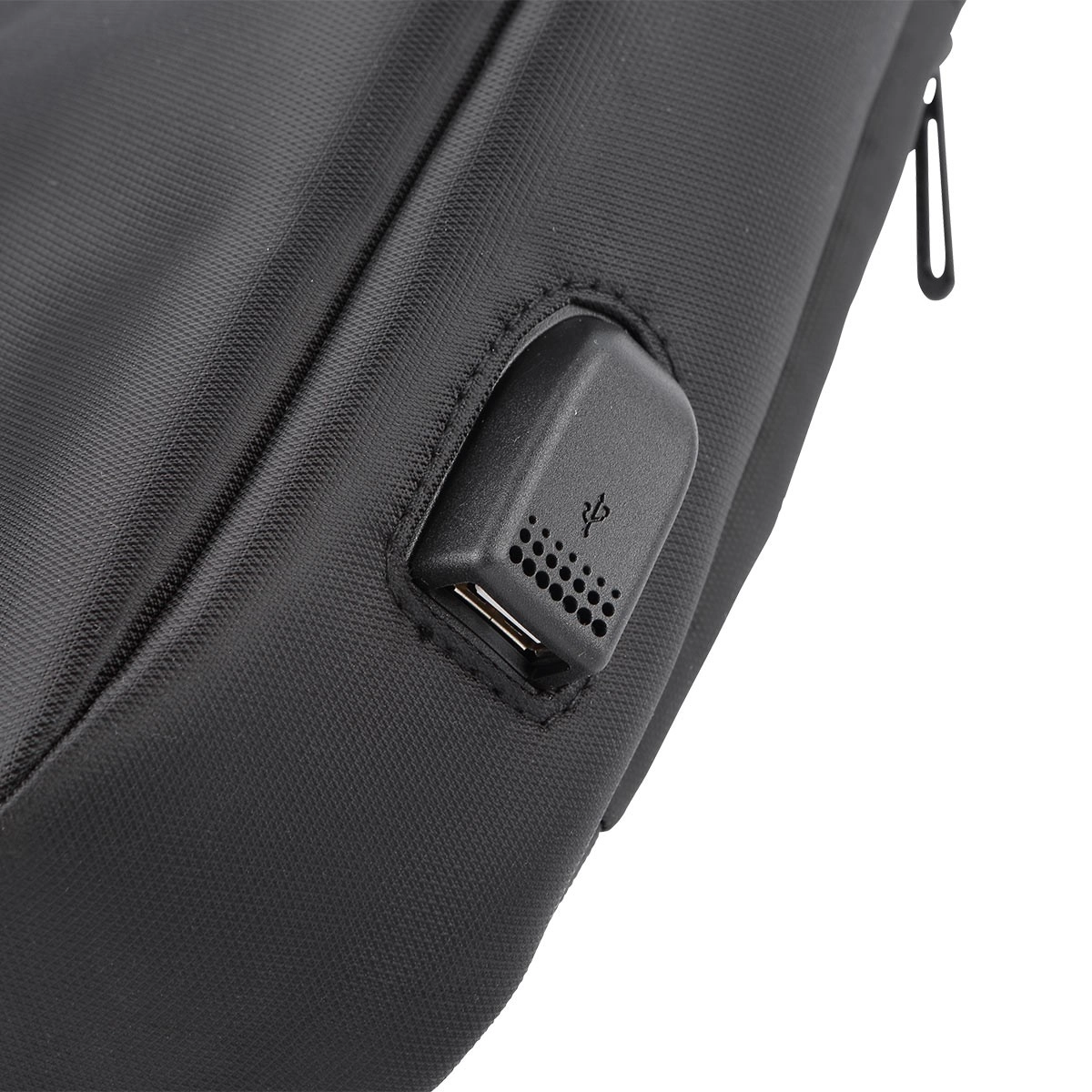 Hold telefon eller høretelefoner opladet selv på farten. Tilslut powerbanken indeni og oplad enhederne bekvemt fra den ydre USB-port uden at åbne tasken.