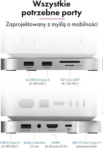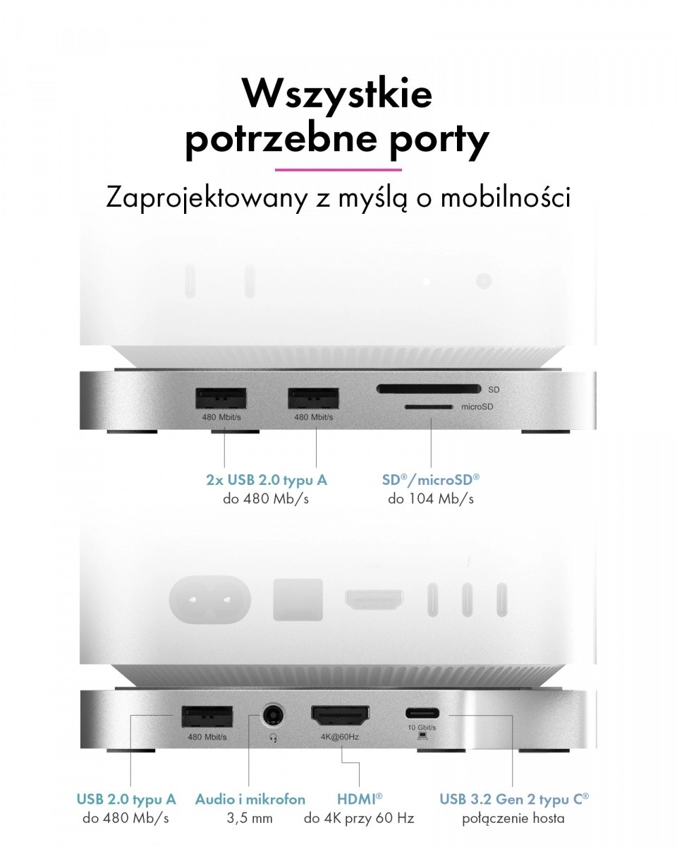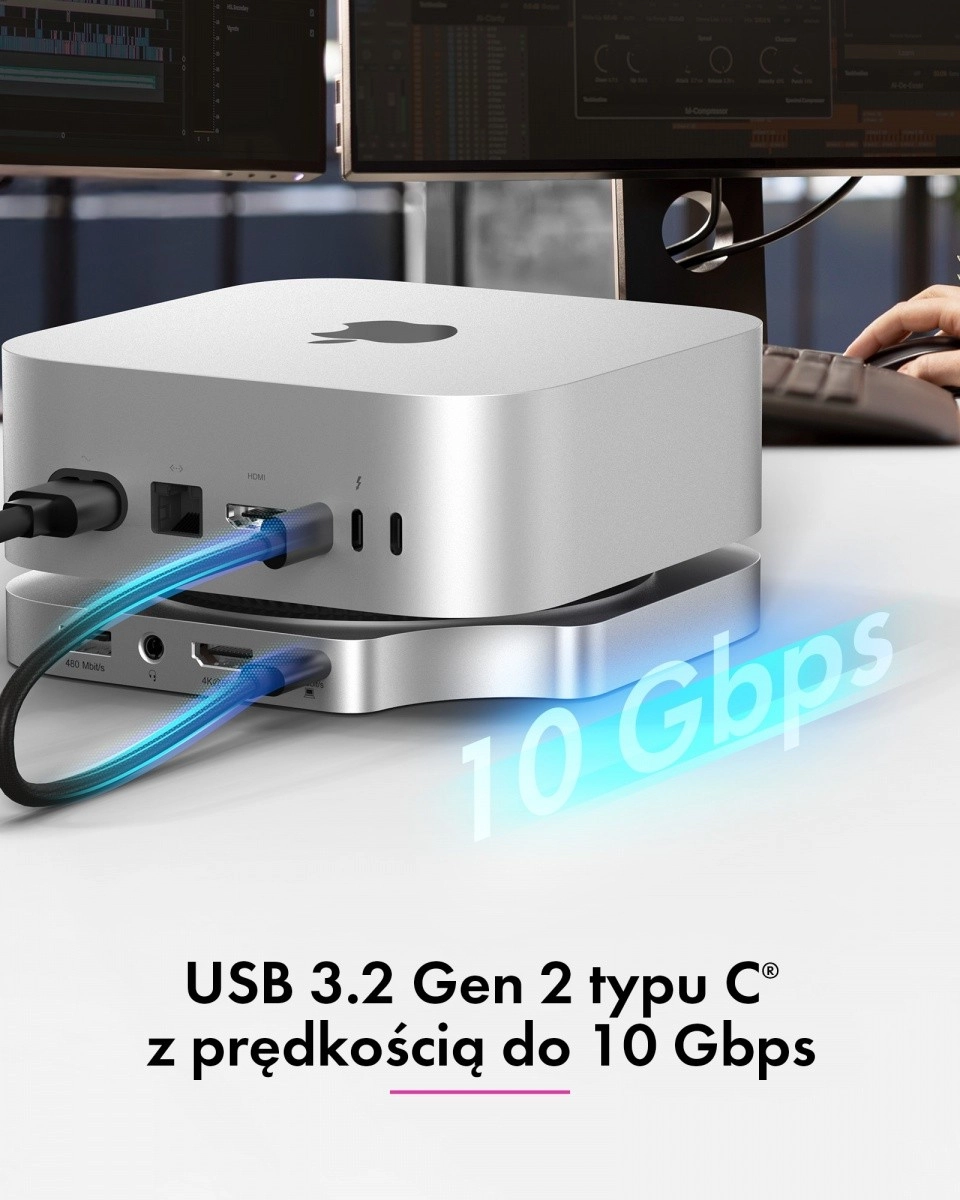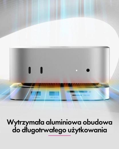 Dokningsstationen følger sømløst Mac mini M4’s stil, mål og farvetoner og fremstår som en integreret del. Den organiserer din arbejdsplads, forbedrer ergonomien og giver adgang til ofte brugte porte direkte på fronten – hurtigt, overskueligt og uden adaptere.