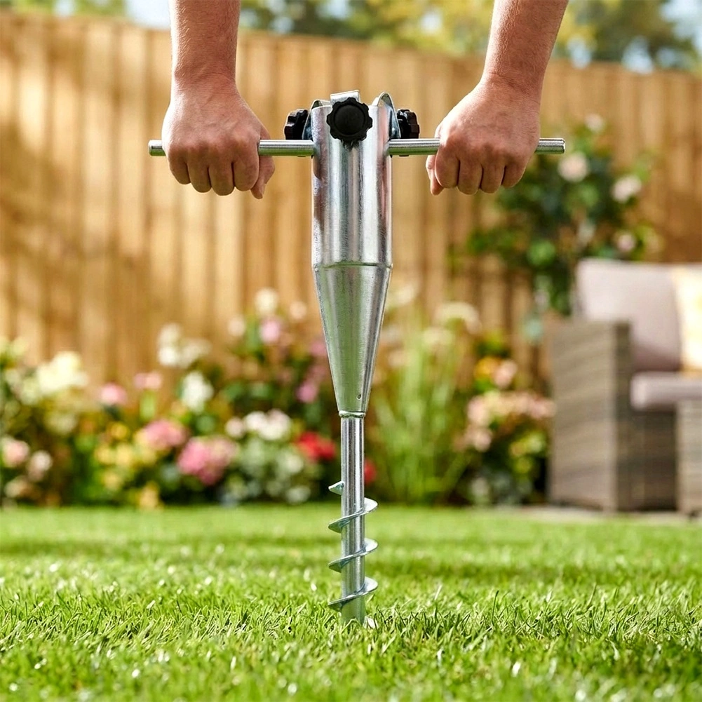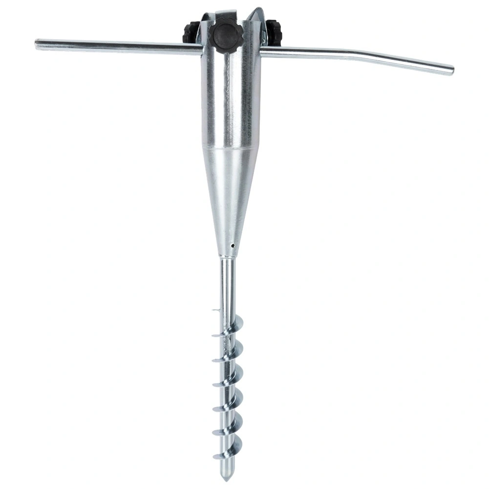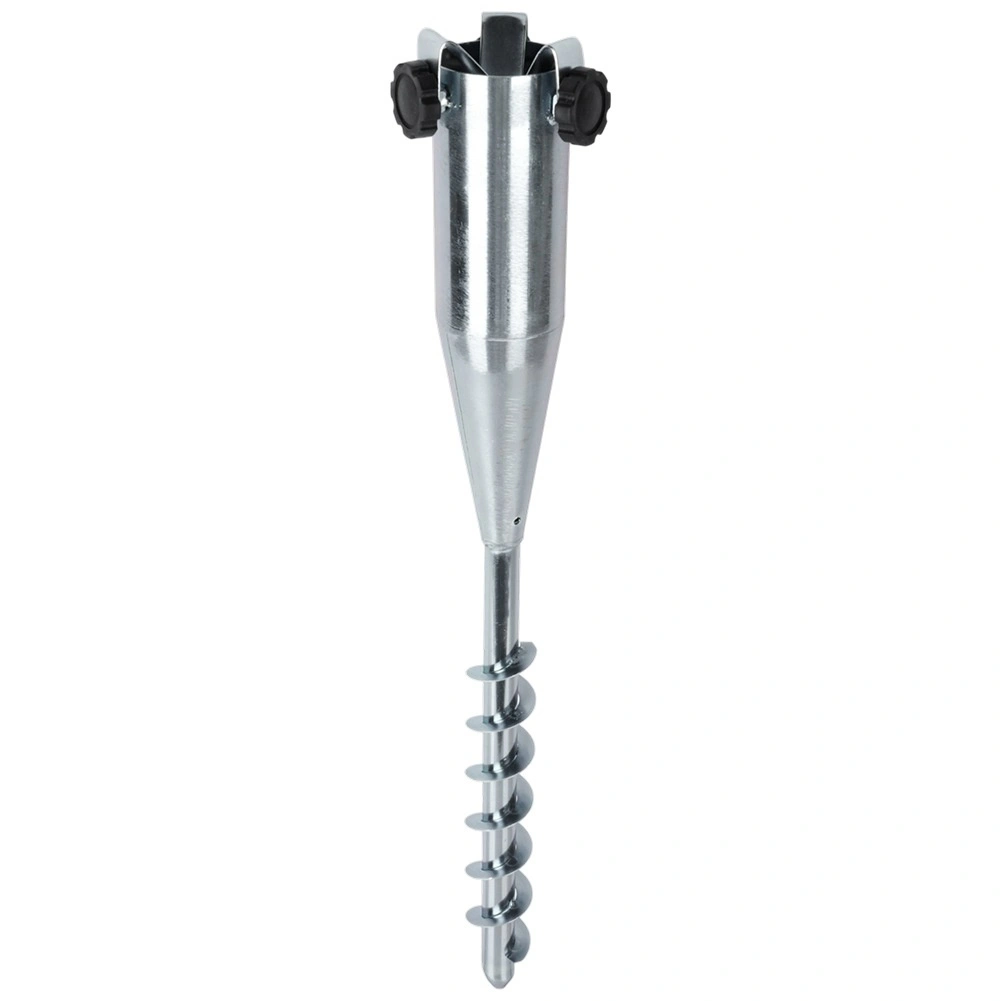 Fastgør parasollen præcis dér, hvor du har brug for den – uden at slæbe på tunge baser. Denne metaljordskrue på 56 cm skrues nemt i jorden, græsplænen eller sandet og holder takket være spiralspidsen sikkert og stabilt. Den justerbare klemme passer til almindelige rørdiametre på 2–6 cm, og de to sidegreb gør montering og udtagning let.