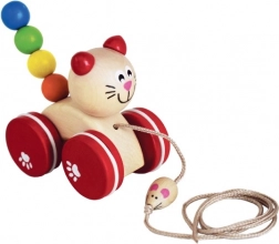 Denne træk-legetøj i form af en kat vil fascinere hvert lille barn, der allerede udforsker verden gennem de første skridt. Med katten på snoren kører musen sjovt med, hvilket tilføjer en ekstra dimension af underholdning.