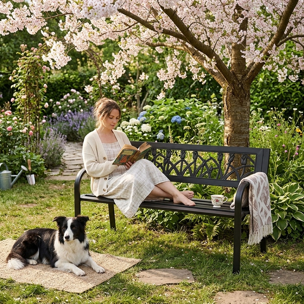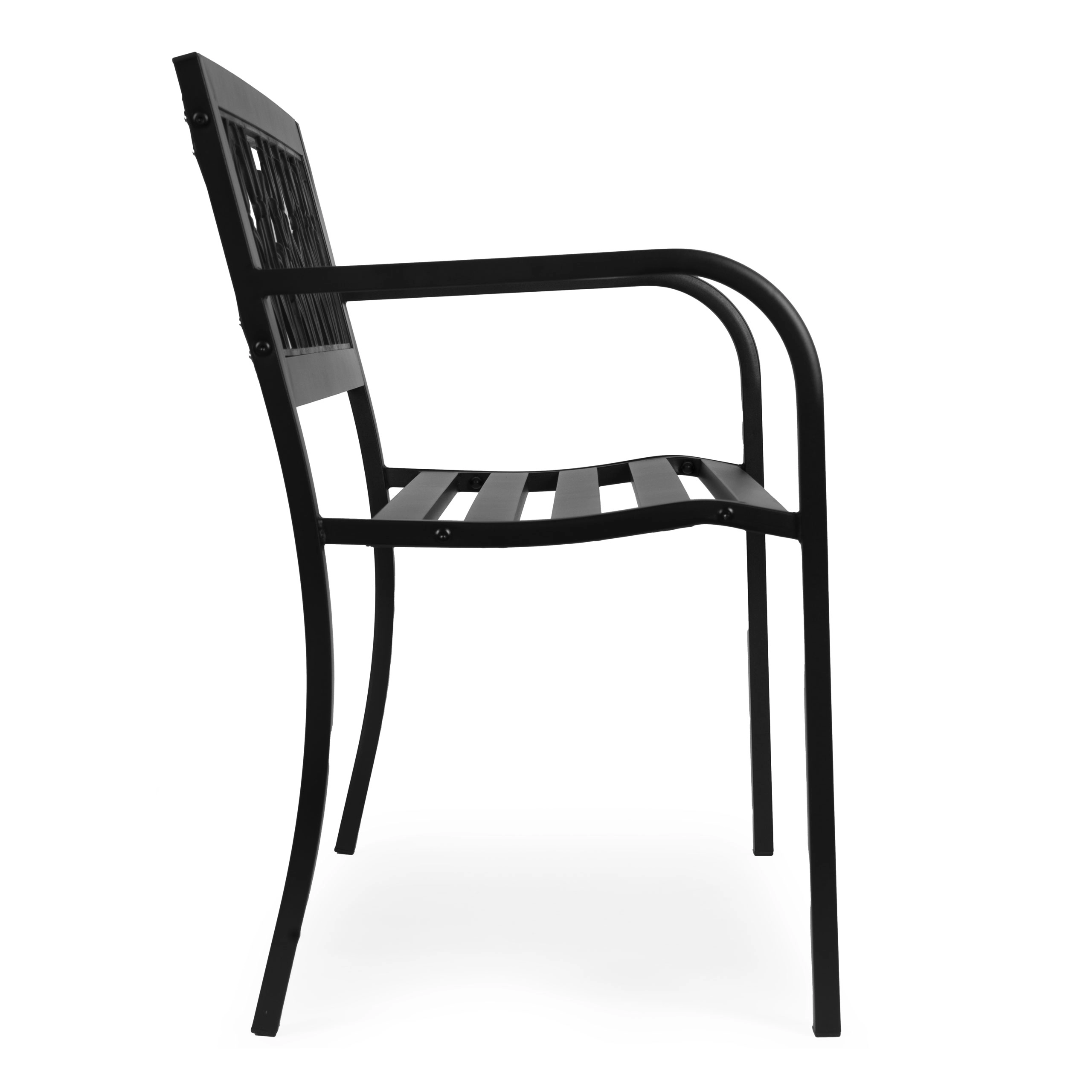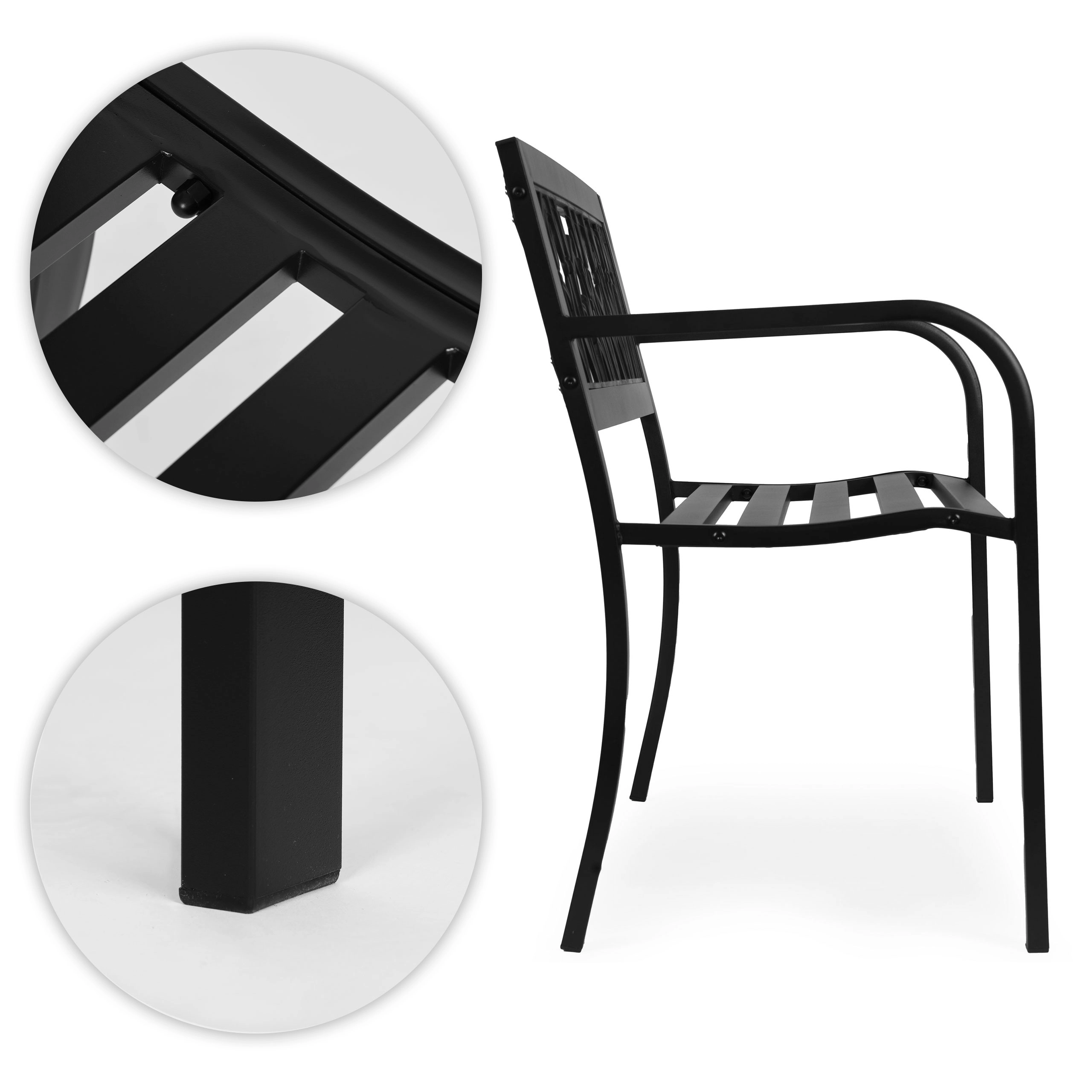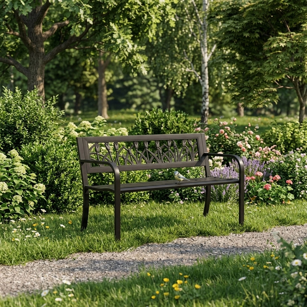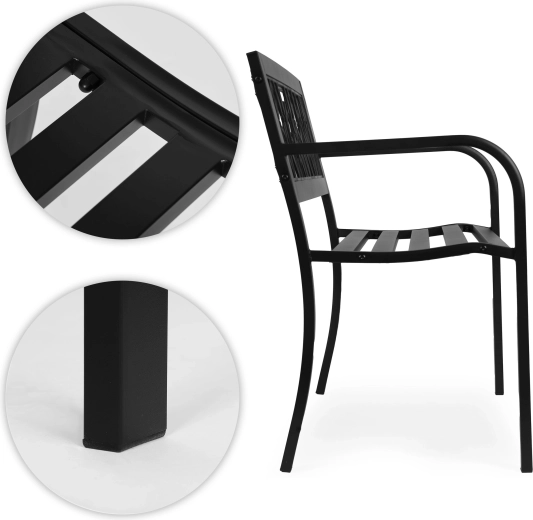 Nyd afslappende stunder på den holdbare og komfortable MultiGarden bænk. Det sorte metaldesign med et åbent blomstermønster i ryglænet passer nemt til både klassiske og moderne udendørsområder. Pulverlakeret stål modstår bedre korrosion og små skrammer, mens PVC-indsatsen i ryglænet er nem at vedligeholde og fugtbestandig.