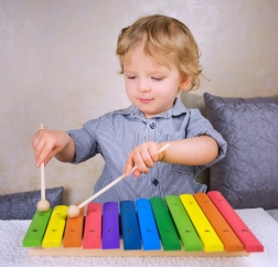 Den farverige træxylofon fra Bino er en af de mest populære legetøj gennem flere generationer. Dette musikinstrument vækker kærligheden til musik og motiverer til de første musikalske præstationer.