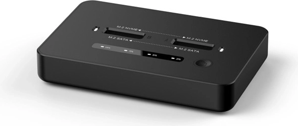 Kompakt dobbelt dockingstation til M.2 SSD, der lader dig tilslutte og administrere to drev samtidig med specifikationerne NVMe og SATA via hurtig USB‑C. Understøtter UASP og TRIM for højere ydeevne og længere levetid for drevene og tilbyder offline kloning uden computer – op til 900 MB/s (NVMe→NVMe) eller 300 MB/s (SATA→SATA) med strømadapter.