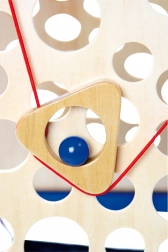 Denne store motorikleg i A-ramme-design giver børn fra 3 år endeløs underholdning og færdighedstræning. Opgaven er med snorene at føre kuglen op ad pladen med huller så højt som muligt – uden at den falder ned. Legen understøtter naturligt tålmodighed, smidighed og samarbejde og er perfekt til fødselsdage og børnehaver.