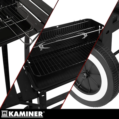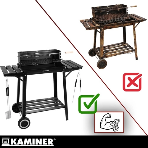 Leder du efter en holdbar havegrill, der ikke vakler efter den første sæson og som samtidig er let at rengøre? KAMINER-grillen med en robust konstruktion af 0,9 mm plade giver styrke, stabilitet og komfort ved hver BBQ. Forkromede overflader på riste og rotisserie gør vedligeholdelsen lettere og sikrer sikker kontakt med maden.