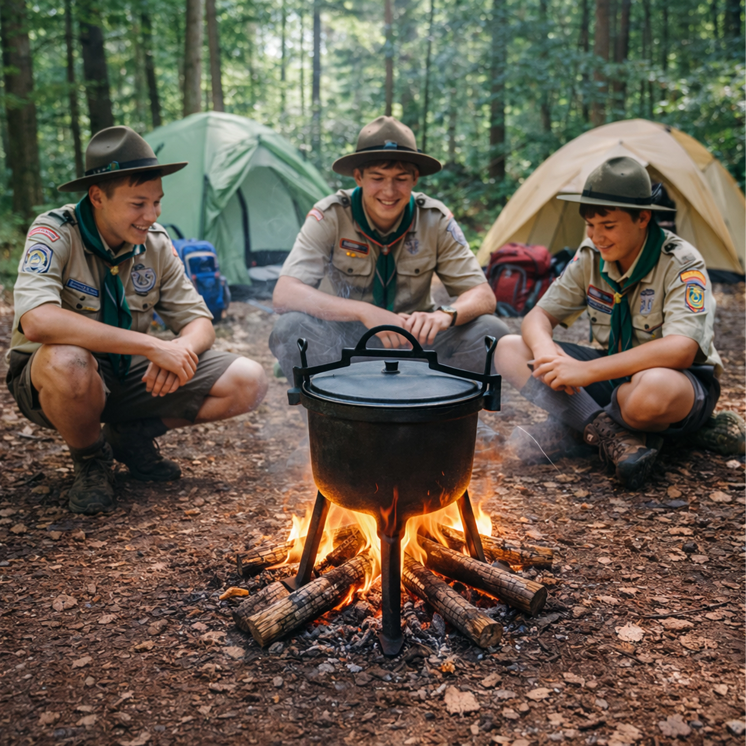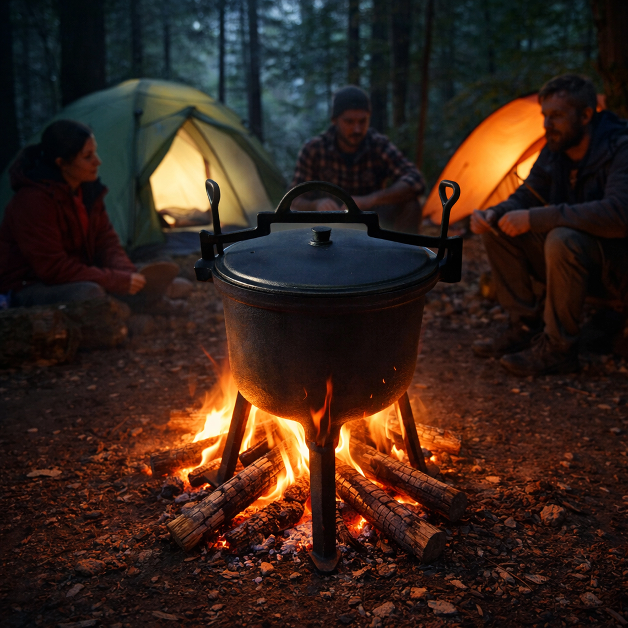 Den integrerede trefod holder kedlen sikkert over flammerne, så madlavningen er tryg og jævn – også i naturen.