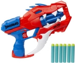 Bliv medlem af den eliteprægede DinoSquad og behersk kraften fra legendariske dinosaurer. Nerf DinoSquad Raptor‑Slash imponerer med et fedt design med velociraptor‑motiv, hvor pilene symbolsk “affyres fra tænderne” på denne rovdyr. Takket være den roterende tromle til 6 pile kan du skyde én ad gangen eller starte hurtig ild og tømme magasinet på et øjeblik.