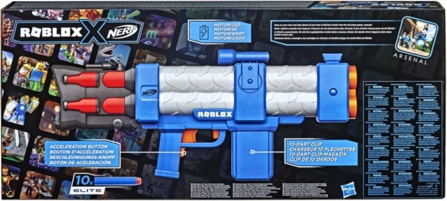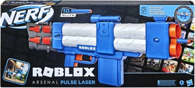 Dyk ned i Roblox-universet med Nerf Roblox Arsenal: Pulse Laser-blasteren! Denne blaster er inspireret af Roblox Arsenal og lader dig få et særligt virtuelt objekt via den medfølgende kode.