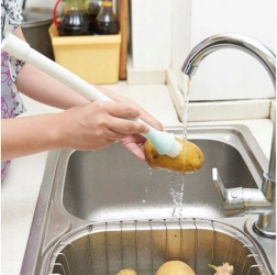 Den fleksible børste til vandhane forvandler din hane til en smart hjælper til hurtig og hygiejnisk vask. Silikonetilsatsen sikrer en sikker fastgørelse, mens det buede børstehoved nemt fjerner fastbrændte madrester og indtørret snavs.