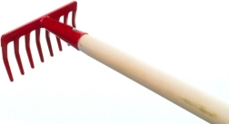 Stærke metal tænder klarer både blade og let planering af jord, samtidig med at de forbliver lette for børn.