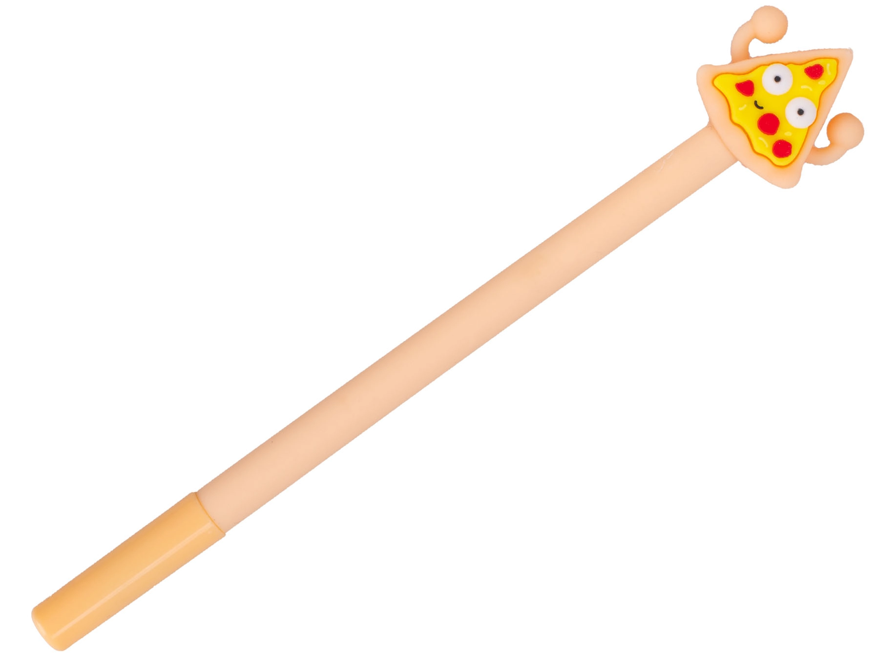 Stilfuld kuglepen med motiver af populær fastfood fra mærket Toys&Trends, som glæder både børn og voksne. Den har en behagelig længde på 17,5 cm og er fremstillet af holdbar plast. Hver pen er pyntet med en sjov dekoration – pommes frites, pizza, hamburger eller drik, hvilket gør kuglepennen til et originalt tilbehør til skole og kontor. Velegnet fra 3 år.