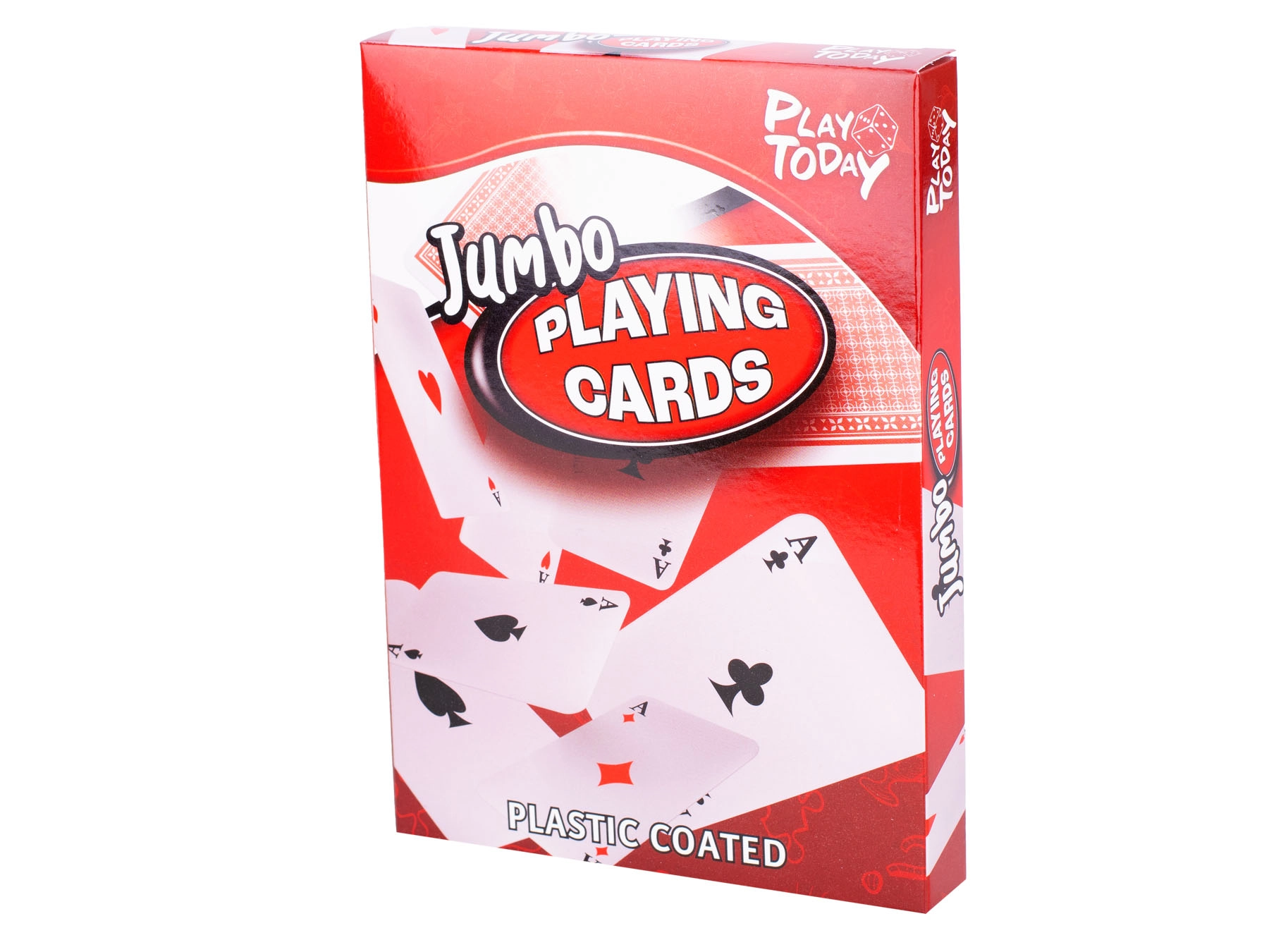 Jumbo spillekort PLAY TODAY giver komfort under spil takket være det ekstra store format. Højden på 17 cm sikrer fremragende læsbarhed af symboler og tal, hvilket værdsættes af begyndere, børn og seniorer. Takket være den stive kartonkonstruktion og det tydelige farvetryk ligger kortene godt i hånden og er lette at se på afstand.