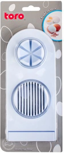 Praktisk kombineret æggedeler TORO Combi til hurtig skæring af æg i skiver og både. En let og holdbar plast-hjælper i hvid, der sparer tid i køkkenet og gør det nemmere at forberede salater, smørrebrød og pynt.