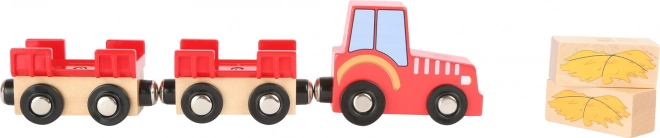 Denne træfarm er ideel til børn, der elsker eventyr på landet. Sættet indeholder 19 dele, herunder en robust rød lade med funktionelle porte, en traktor med trailer og flere bondegårdsdyr som hest, ko og lille gris. Legetøjet stimulerer ikke kun kreativitet og motoriske færdigheder, men introducerer også børn til grundlæggende gårdliv.