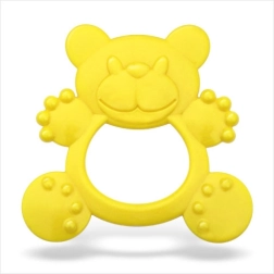 Gul silikonebidering med ring er let at holde og ideel til blid tygning og leg.