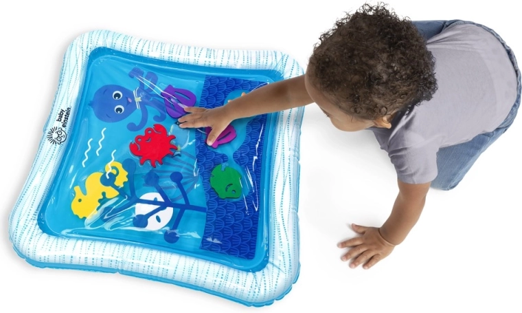 Vandlegetæppet Opus’s Ocean of Discovery fra BABY EINSTEIN forvandler mavetid til et dragende eventyr. Det klare vandvindue med fotorealistiske oceanmotiver og 6 flydende former stimulerer syn, berøring og nysgerrighed. Når børn trykker og flytter på figurerne, styrker de skuldre, nakke og core og lærer samtidig princippet om årsag og virkning.
