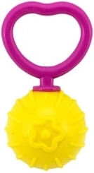 Det ergonomiske håndtag giver babyen et fast og behageligt greb, understøtter øje–hånd-koordination og de første forsøg på at holde selv.