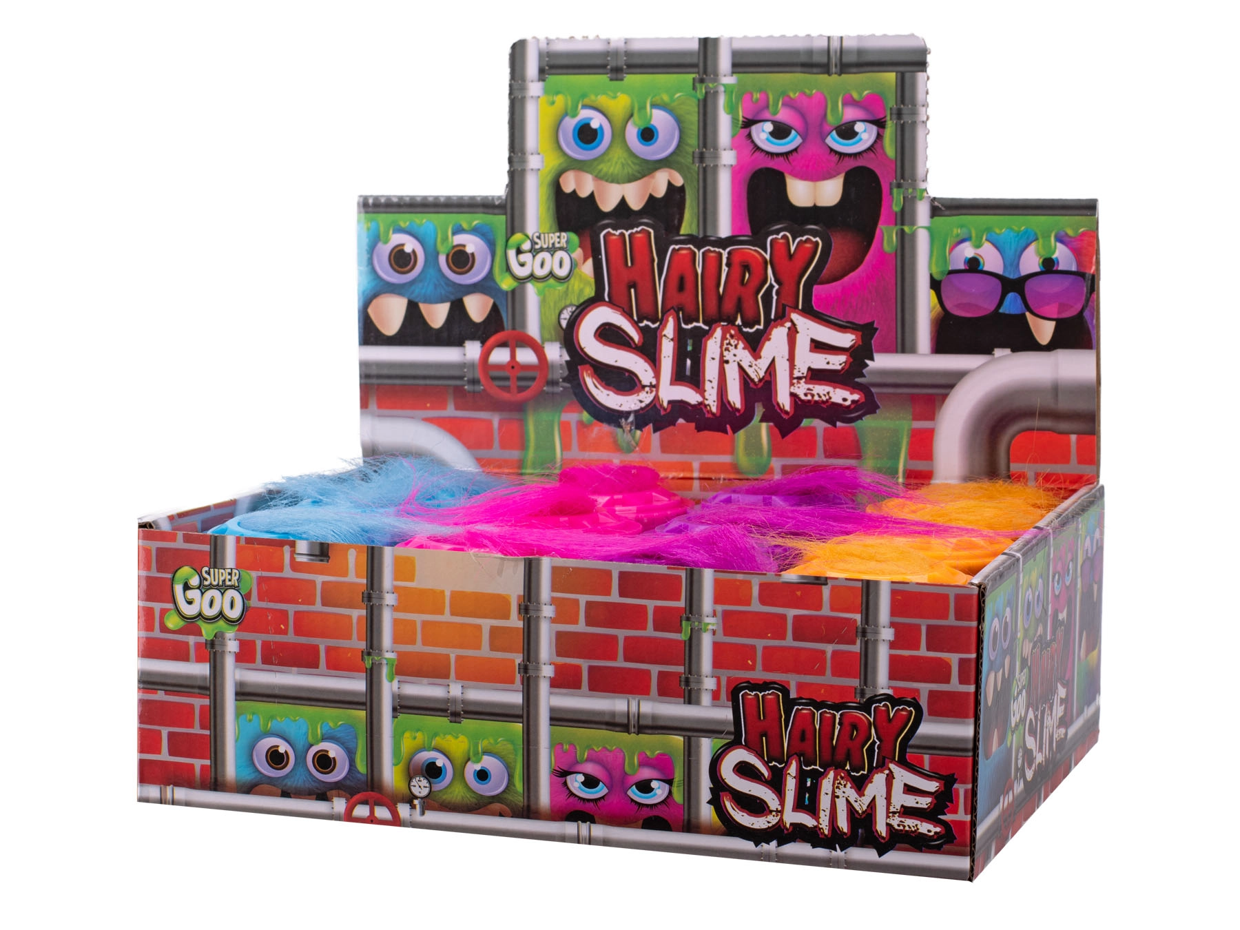 Oplev den legende Super Goo slim formet som et pelsklædt monster, der giver børn fra 3 år sanseleg, udvikling af finmotorik og masser af sjov ved at klemme, strække og forme. Emballagen på 8 cm rummer 100 g slim i fire attraktive farver – lilla, blå, orange og lyserød.