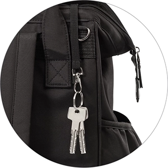 Nøgle-/sutteholder, sidelommer, polstrede stropper
