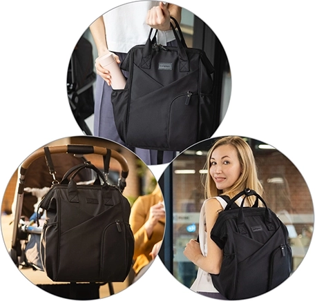 Bær rygsækken på ryggen, i hånden, eller fastgør den til barnevognen/klapvognen for frie hænder. Justerbare stropper og korte hanke sikrer komfort i enhver situation.