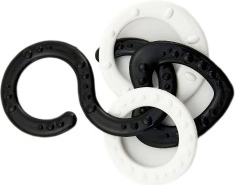 Disse ottetaller med vedhæng er designet til at støtte nyfødtes synsudvikling. Den kontrastfyldte sort-hvide kombination er praktisk og effektiv for børn, hvis syn stadig er under udvikling.