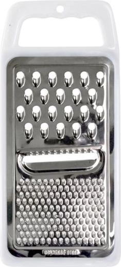 Praktisk fladt rivejern i rustfrit stål fra TORO med solidt plastgreb for komfortabel og sikker brug. Tilbyder flere rivefunktioner – fint, groft og skiveskæring til alsidig anvendelse i køkkenet.