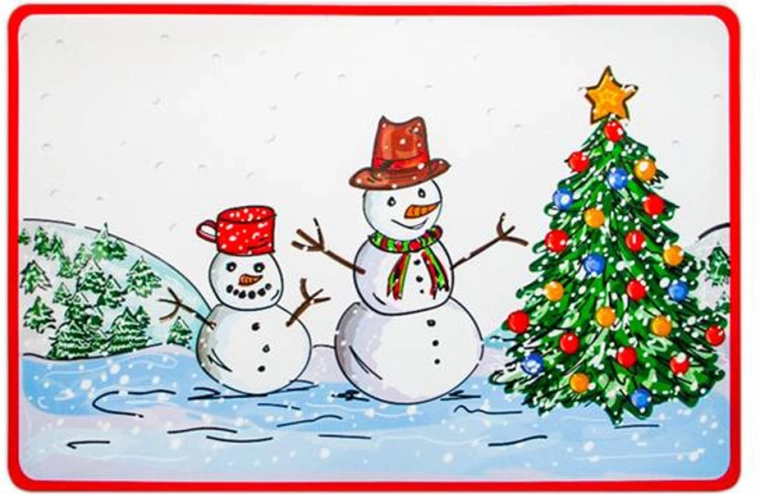 Pynt festbordet med en praktisk placemat med en glad snemand. Den robuste plast beskytter bordpladen mod snavs og skader og er meget nem at rengøre. De universelle mål passer til de fleste spiseborde og tilfører en vinterlig og julet stemning.
