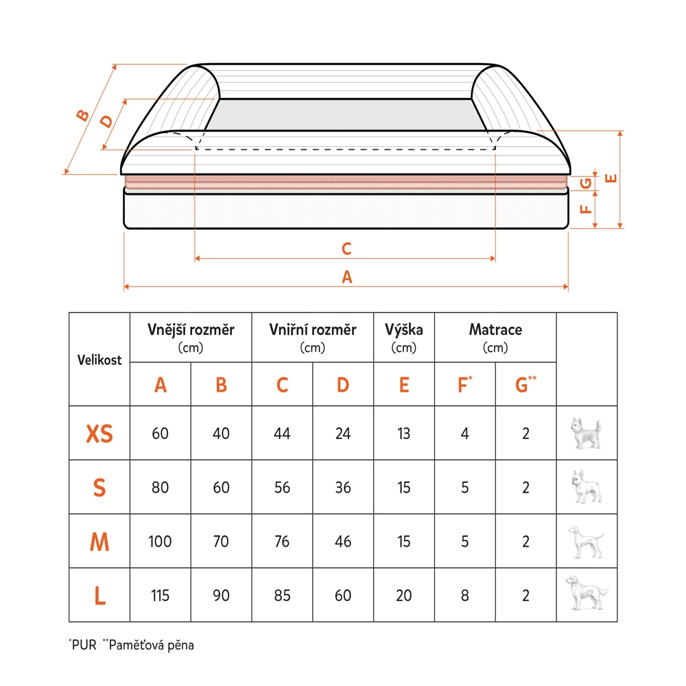 Cloud XS er en seng designet til små hunde og hvalpe, der har brug for tryghed og komfort under søvn. Den to-lags madras kombinerer 4 cm PUR-skum (25D) for fast støtte og 2 cm memoryskum (40D) for jævn trykfordeling og aflastning af rygsøjle og led. Den samlede højde på 6 cm gør det nemt at bevæge sig i sengen uden overdreven nedsynkning.