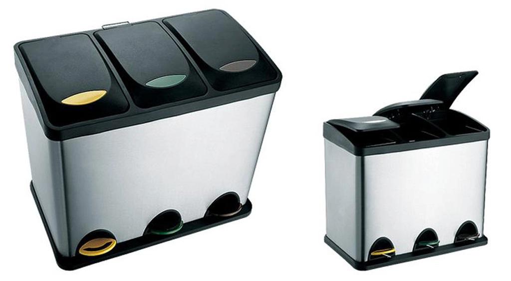 Praktisk skraldespand i rustfrit stål til sortering af affald med en kapacitet på 24 l (3×8 l) med separate rum for nem sortering. Den holdbare overflade i rustfrit stål, de kompakte mål og behagelig åbning af låget sikrer renlighed og orden i både hjemmet og på kontoret.