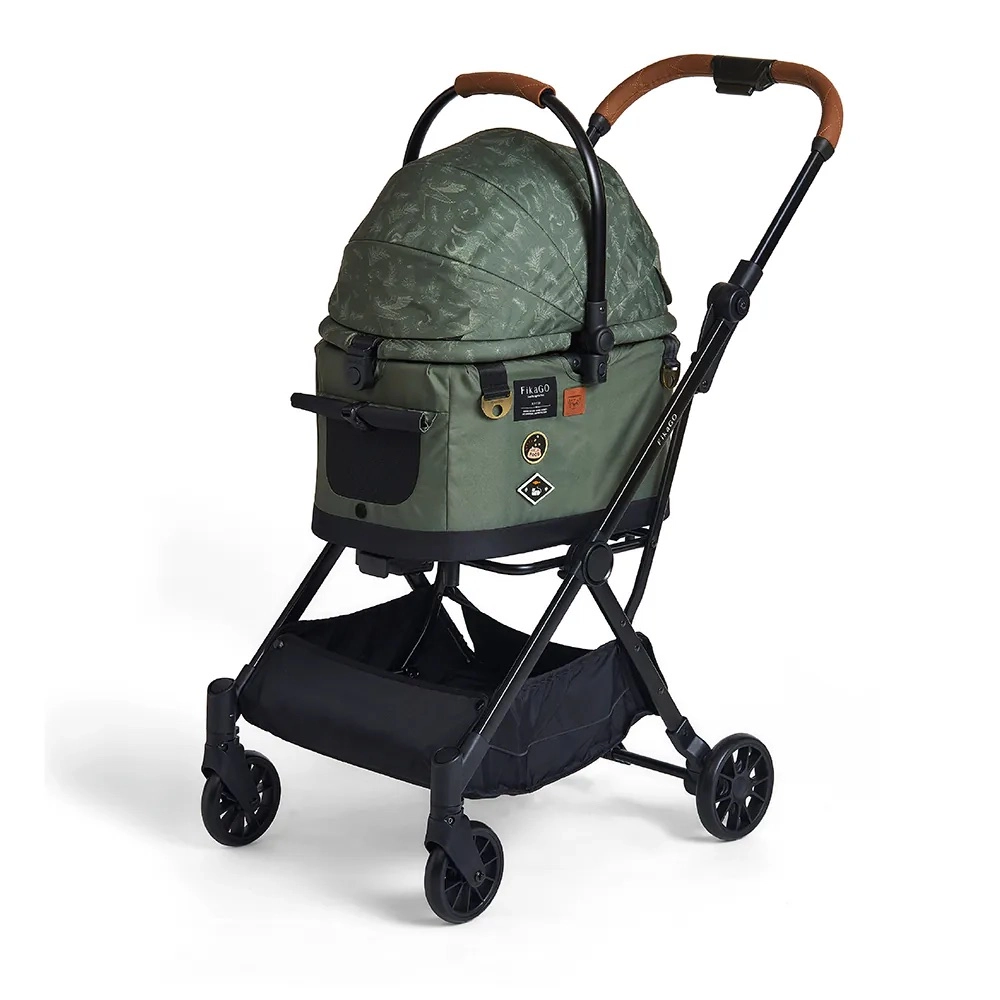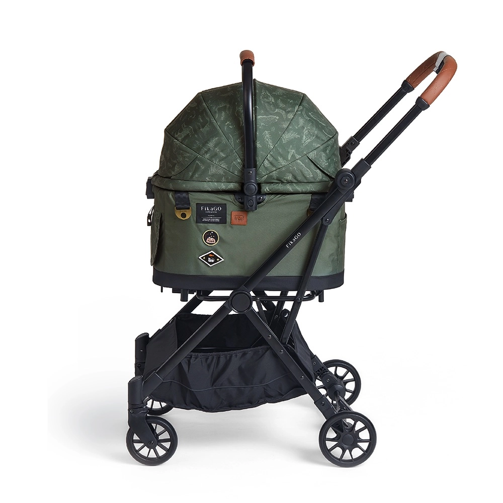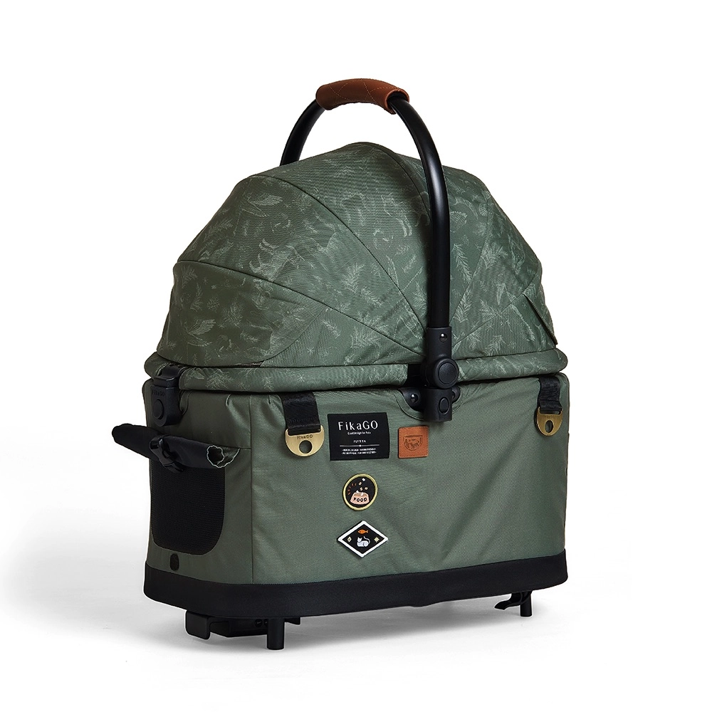Fikago Flytta Oslo Forest er en smart 3-i-1 løsning: en komfortabel liggeplads derhjemme, en sikker transportboks til bilen og en stabil barnevogn til hunde og katte på gåture. Takket være den lave vægt på kun 4,2 kg (chassis) og 2,5 kg (bæreenhed) er den let at bære og opbevare; den foldes med én hånd på et sekund og står selv efter sammenklapning.