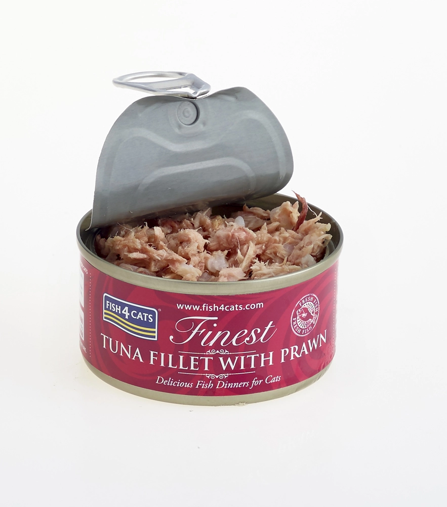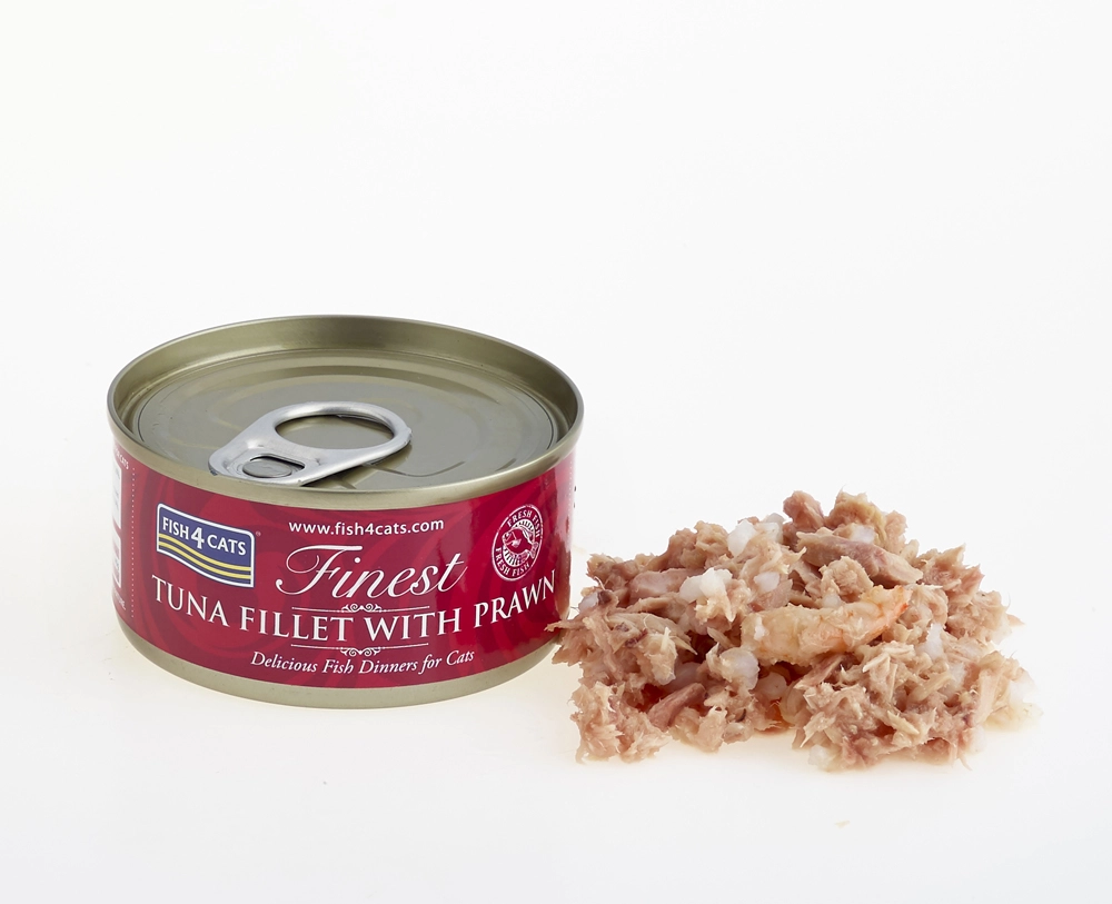 FISH4CATS tun med rejer er en premium dåse til katte med et højt indhold af fisk, som støtter vitalitet, blød pels og sund hud. Kombinationen af saftig tun og rejer tiltaler selv kræsne katte og giver et afbalanceret og velsmagende måltid.