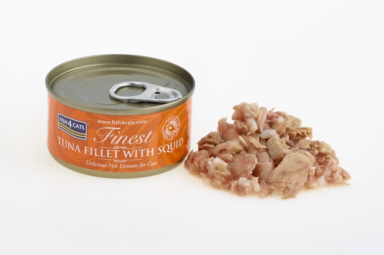 Fish4Cats Finest Tun med blæksprutte er et populært vådfoder til kræsne katte. Det høje indhold af fisk giver en naturlig kilde til kvalitetsproteiner og omega-3 for at støtte pels, hud og generel vitalitet. Den fine tekstur og den saftige bouillon øger smagsaccepten selv hos kræsne katte.