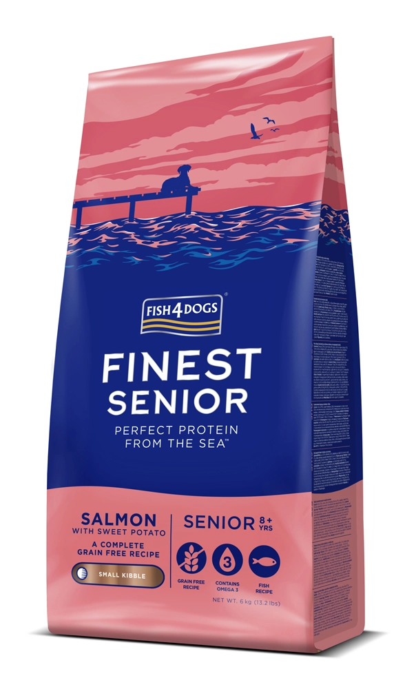 Leder du efter et afbalanceret foder til den mere følsomme fordøjelse hos ældre hunde af små racer? FISH4DOGS Finest med laks og søde kartofler tilbyder letfordøjeligt protein fra norsk laks, velsmagende søde kartofler som kornfri energikilde og en kombination af omega-3 fedtsyrer for seniors hundes samlede sundhed.