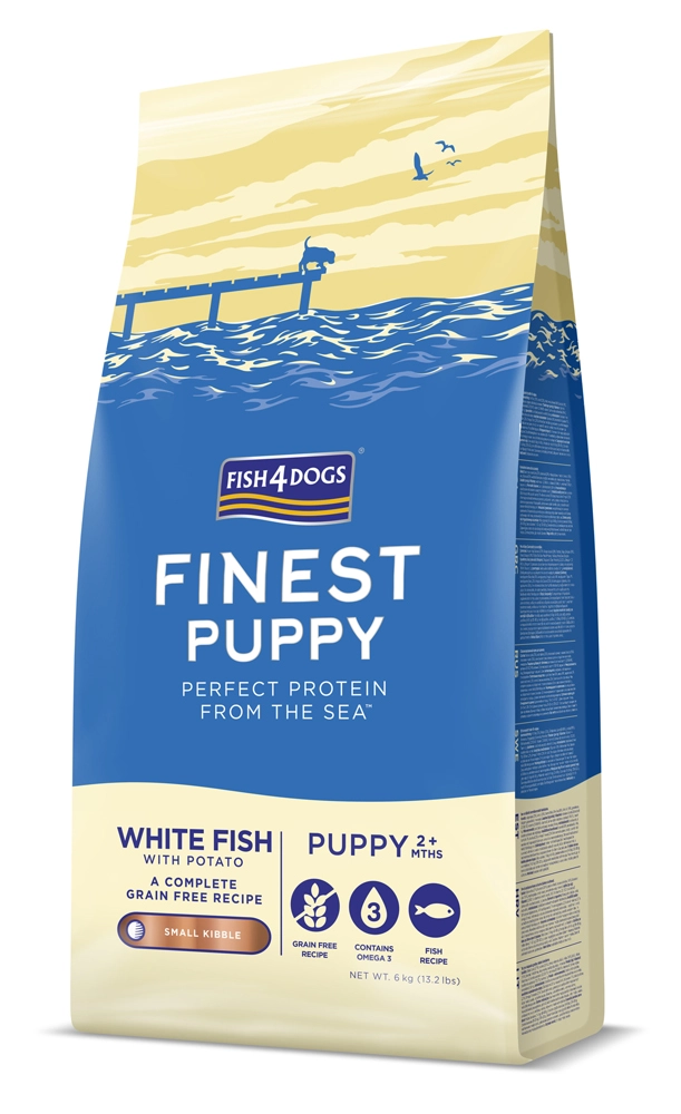 FISH4DOGS tørfoder til hvalpe af hvid fisk med kartofler er velsmagende og letfordøjeligt foder, skabt specielt til behovene hos voksende hunde fra 2 måneder. Hvid fisk fra det nordlige Atlanterhav er en naturlig kilde til omega-3 fedtsyrer, som bidrager til optimal udvikling af nervesystem, syn og det kardiovaskulære system.