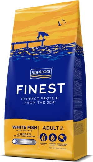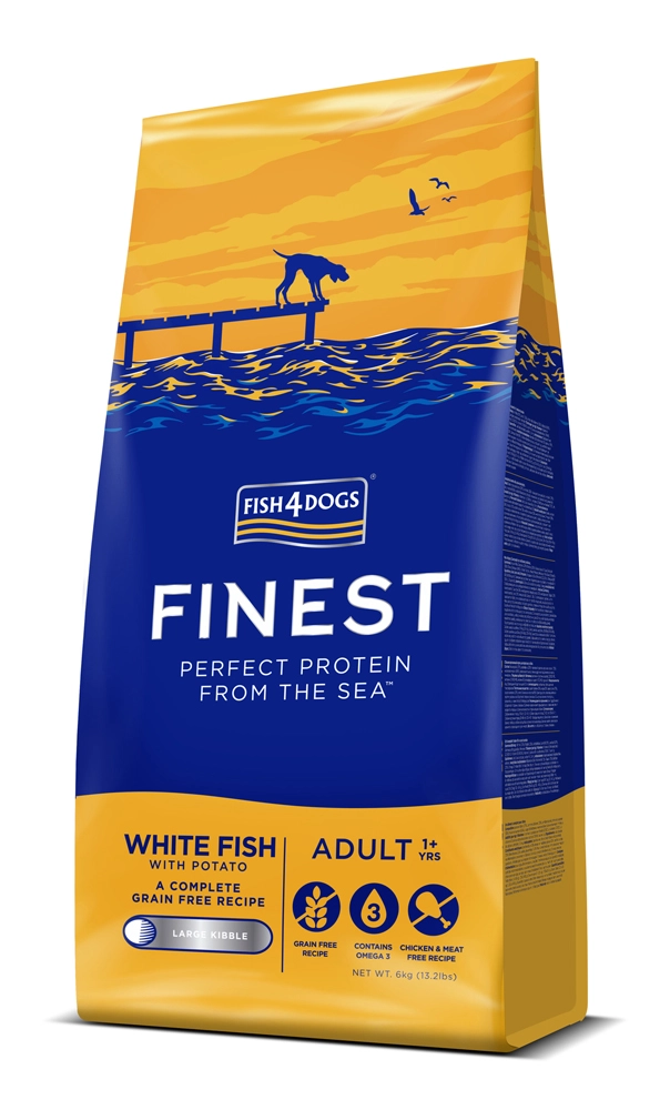 Foderet FISH4DOGS af hvid fisk med kartofler er et afbalanceret, kornfrit tørfoder fremstillet af sæsonbestemte hvide fiskearter fra det nordlige Atlanterhav. Takket være indholdet af laksemel og -olie er det rigt på omega-3, som understøtter sund hud, skinnende pels og den generelle kondition. Let fiskebaseret protein og kartofler er skånsomme mod fordøjelsen og bidrager til god tålelighed.