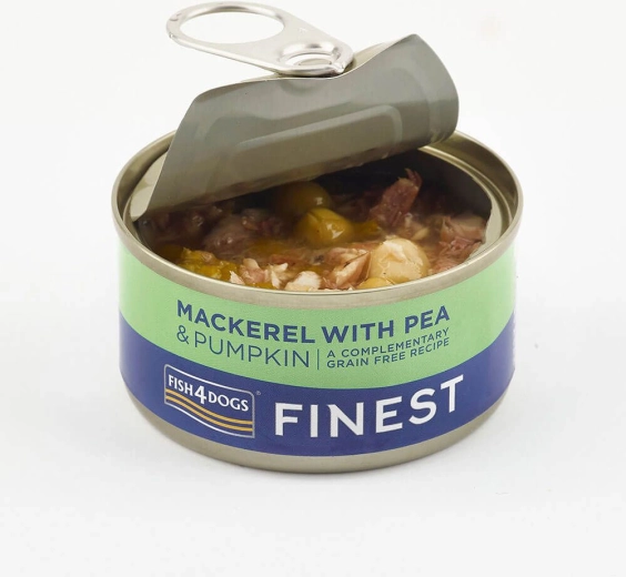 Hundekonserves FISH4DOGS med makrel, græskar og ærter giver et afbalanceret, velsmagende og letfordøjeligt foder af kvalitets havfisk og grøntsager. Kornfri opskrift uden tilsatte farvestoffer eller konserveringsmidler er velegnet også til følsomme hunde og hjælper med at støtte en sund fordøjelse.
