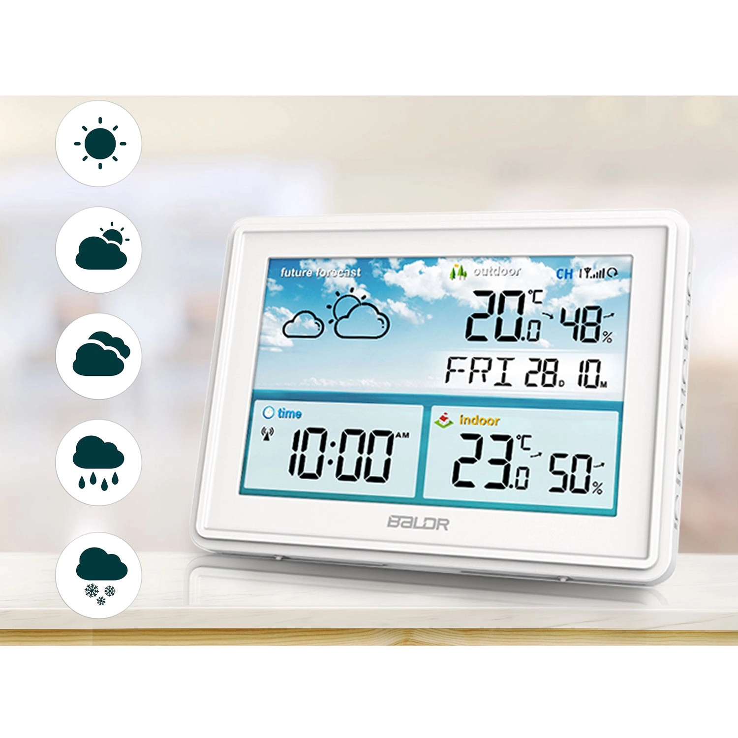 - Let aflæsning og tydelige vejrikoner