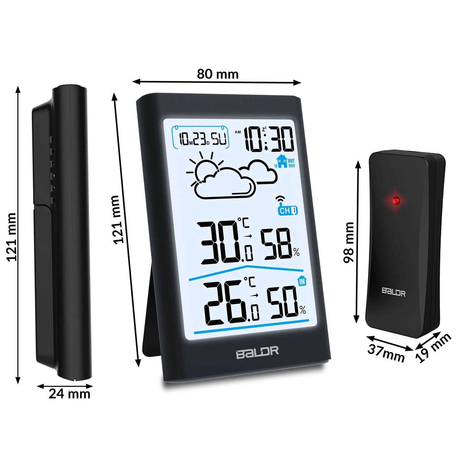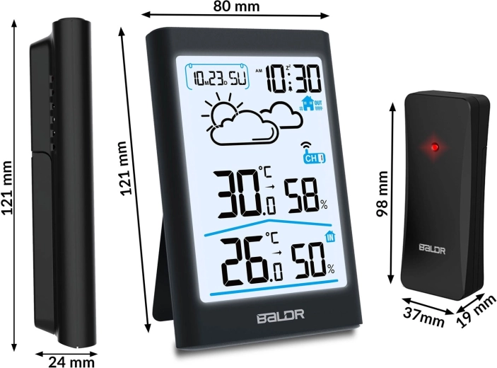Den trådløse sensor med rækkevidde op til 60 m parres automatisk med stationen og understøtter kanalvalg til tilføjelse af flere sensorer. Intuitiv betjening, store letlæselige cifre og et elegant sort design passer ind i enhver indretning – både på bord og væg. Skiftbar dag/nat-bagbelysning sikrer behagelig aflæsning under alle forhold.