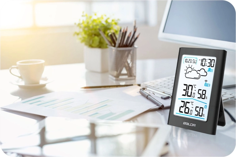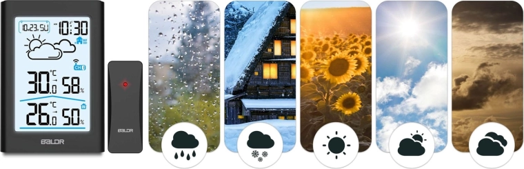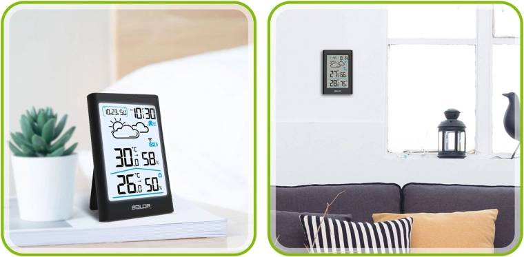 - Omfattende klimamonitorering – temperatur og luftfugtighed inde og ude, min./maks.-værdier.