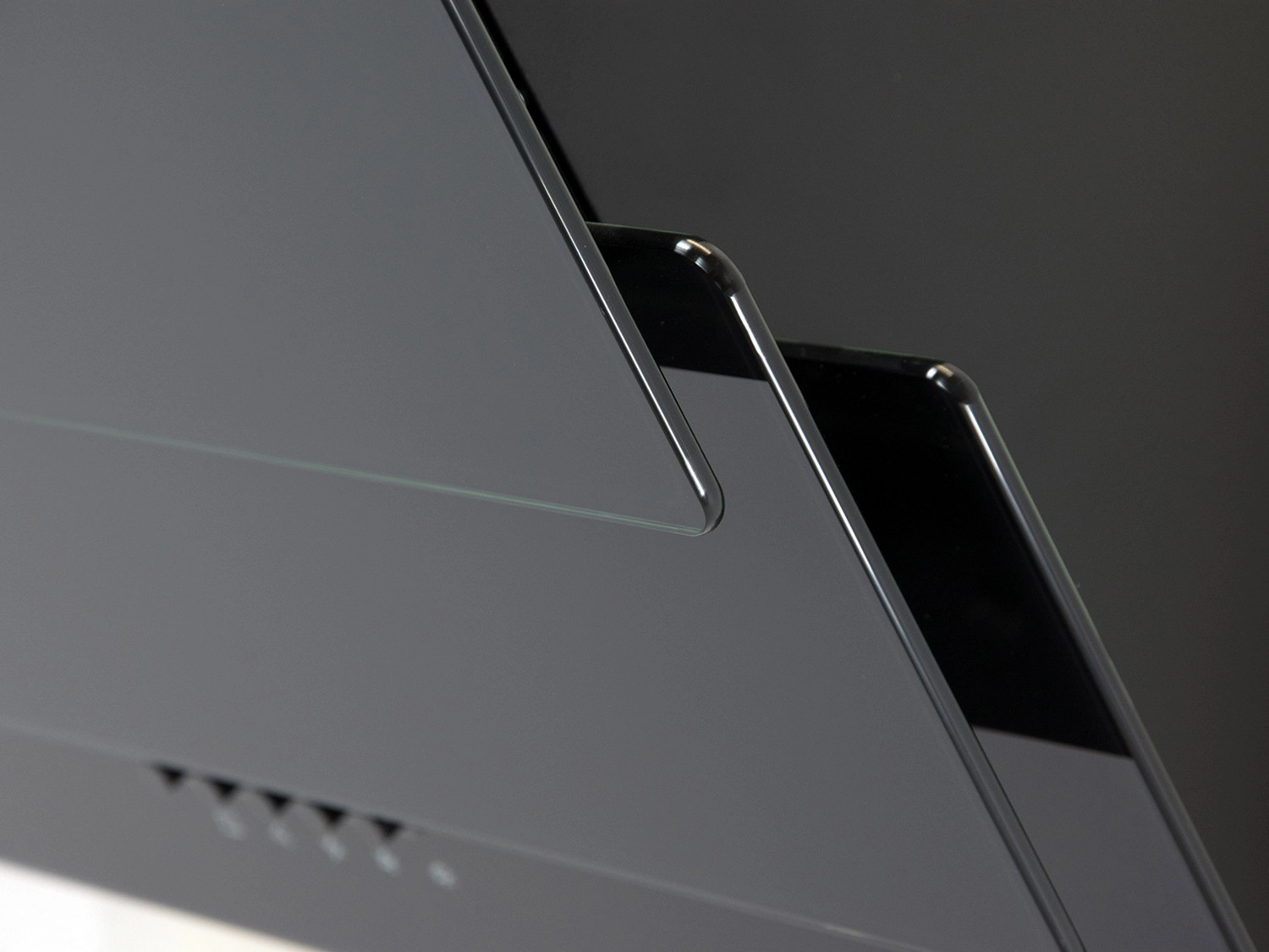 - rustfrit stål + hærdet glas på fronten, mat sort