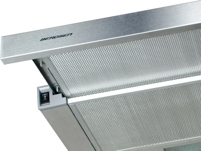 Den teleskopiske (udtrækkelige) BERDSEN-emhætte er et ideelt valg til moderne og mindre køkkener, hvor plads og design er vigtige. Den udtrækkelige frontliste udvider opsamlingsfladen over kogepladen og forbedrer udsugningseffekten, mens den slanke krop forbliver skjult i overskabet. Inox-udførelse i rustfrit stål er let at vedligeholde og matcher de fleste apparater.