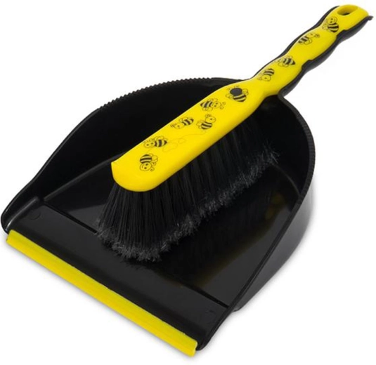 Praktisk sæt til daglig rengøring – fejekost med fejeblad med motiv af Bier. Et let, kompakt og nemt håndterbart redskab, der hurtigt fjerner krummer, støv og snavs fra gulve og arbejdsflader.