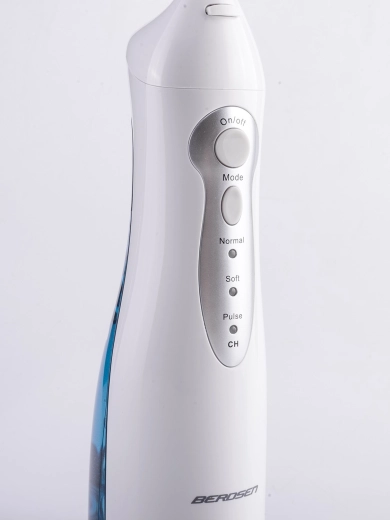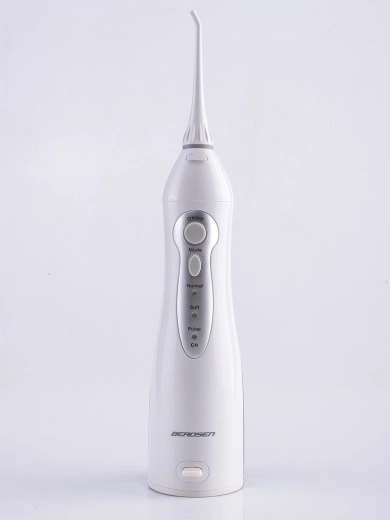 Trådløs dentalirrigator Berdsen ClearJet X3 giver effektiv og skånsom rengøring af mellemrum mellem tænder, bøjler og kroner. Den tilbyder 3 tilstande (Normal, Soft, Pulse) med op til 1400 pulser pr. minut, ideelt tryk 40–90 PSI, 2-minutters timer og en 150 ml beholder. Takket være støjsvag drift på 75 dB, IPX7 vandtæthed, 360° roterende dyse og batteritid på 3–4 uger pr. opladning er den et fremragende valg til daglig mundhygiejne hjemme og på farten.