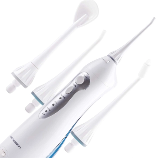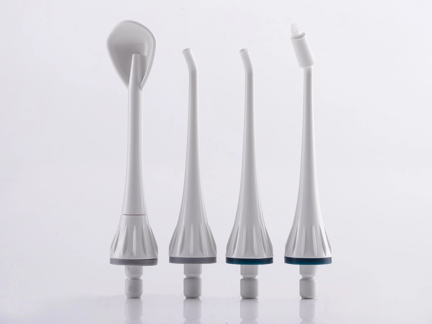 I sættet medfølger 4 specialiserede dyser med 360° rotation for maksimal rækkevidde: to standarddyser, en tungeskraber for frisk ånde og en ortodontisk dyse til grundig rengøring omkring bøjler og kroner.